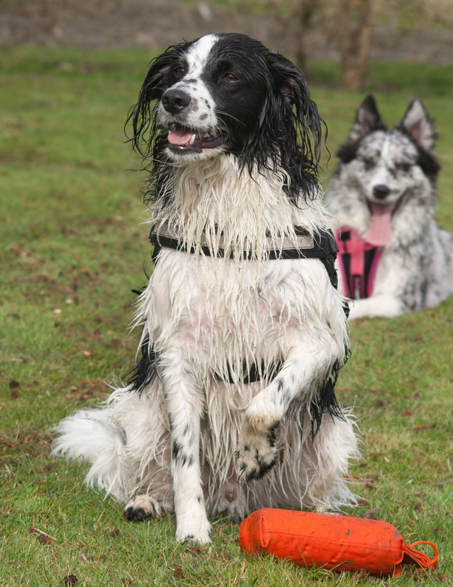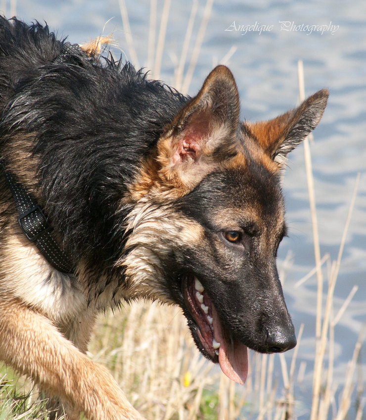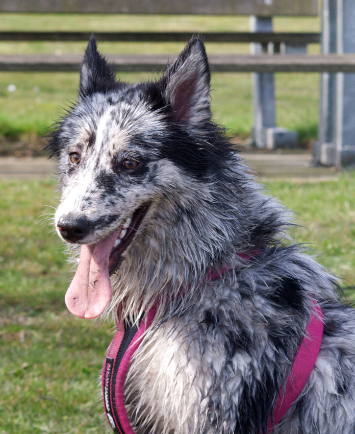 Bruno ging vrijwel meteen het water in toen hij los mocht!