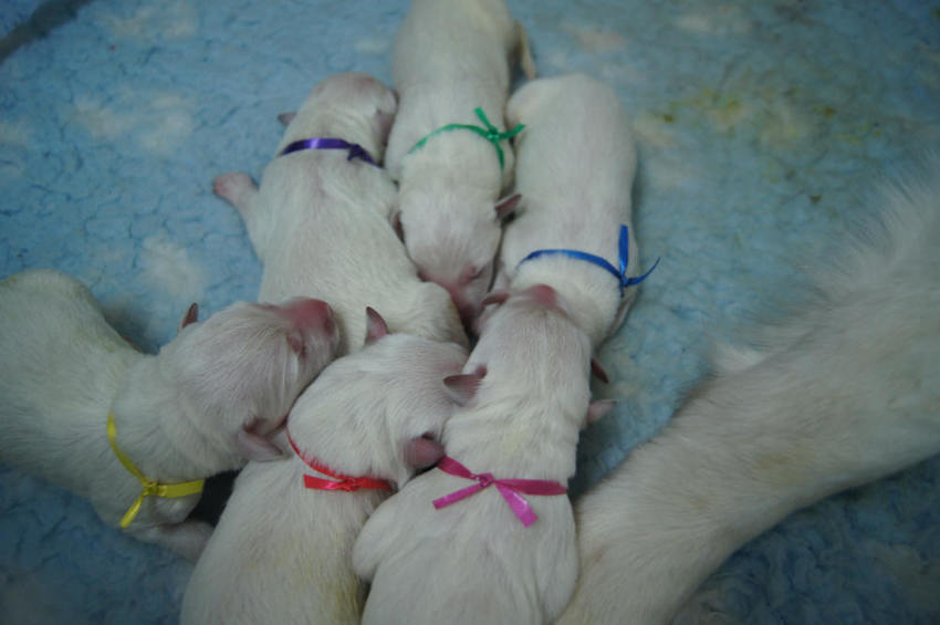 Het is en tijdje geleden maar de puppy's zijn geboren. Helemaal leuk en nu weer aftellen tot het volgende. We gaan 16 mei op bezoek bij de fokker om kennis te maken met de puppy's. Hieronder een aantal foto's: