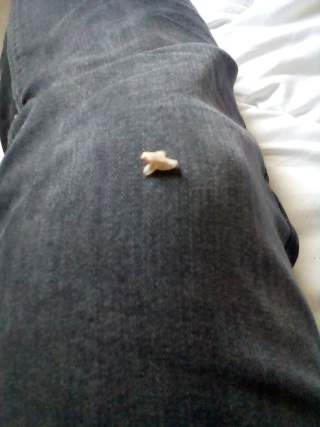 Gijs had een keer een goldenretriever onder het bloed gespeeld, was met spelen blijkbaar een kies eruit gegaan, oeps