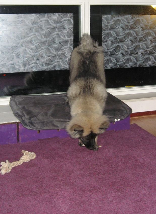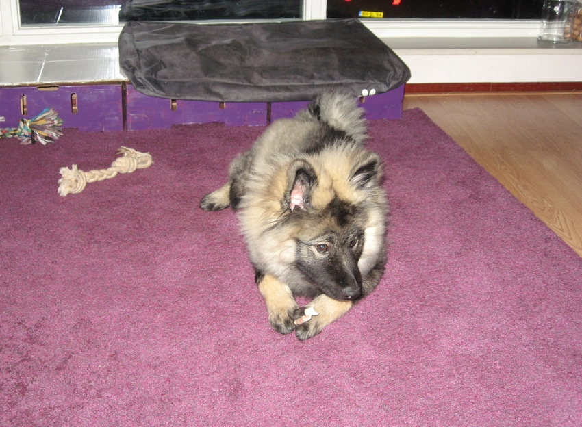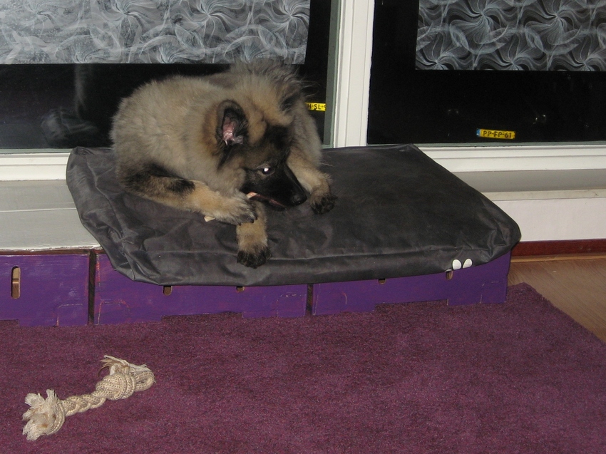 En ze heeft eindelijk dat vloerkleed weer teruggelegd, ze dacht zeker dat ik daar op zou gaan plassen??? Nou mooi niet hoor, ik plas nu alleen nog maar over vers beplast gras enzo. ![]()