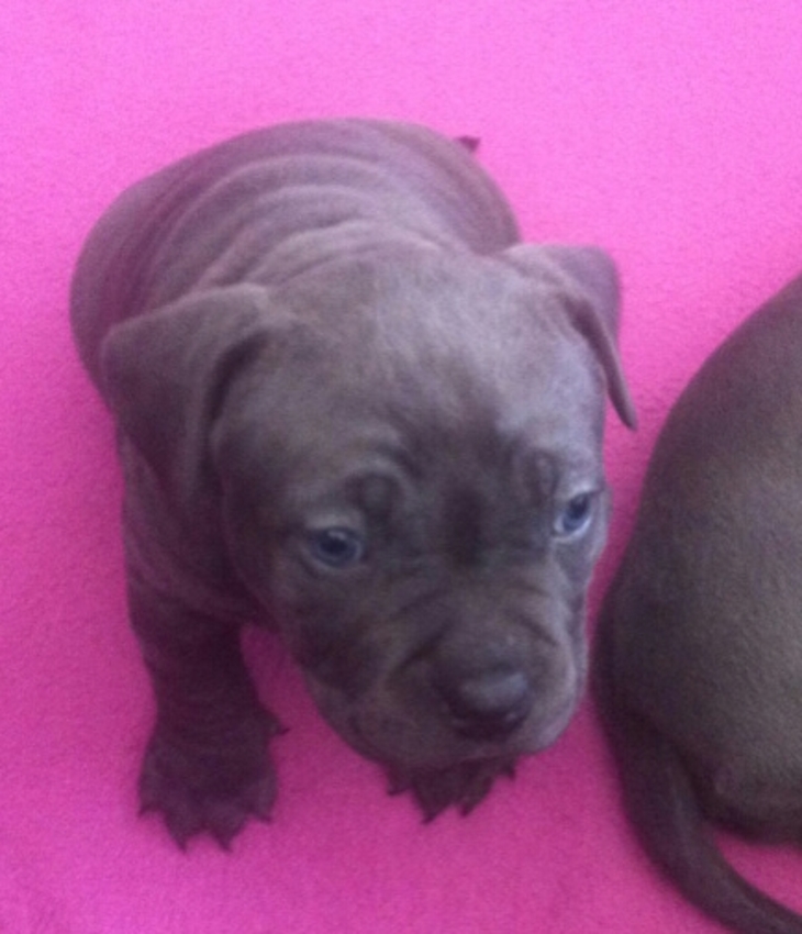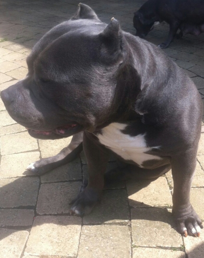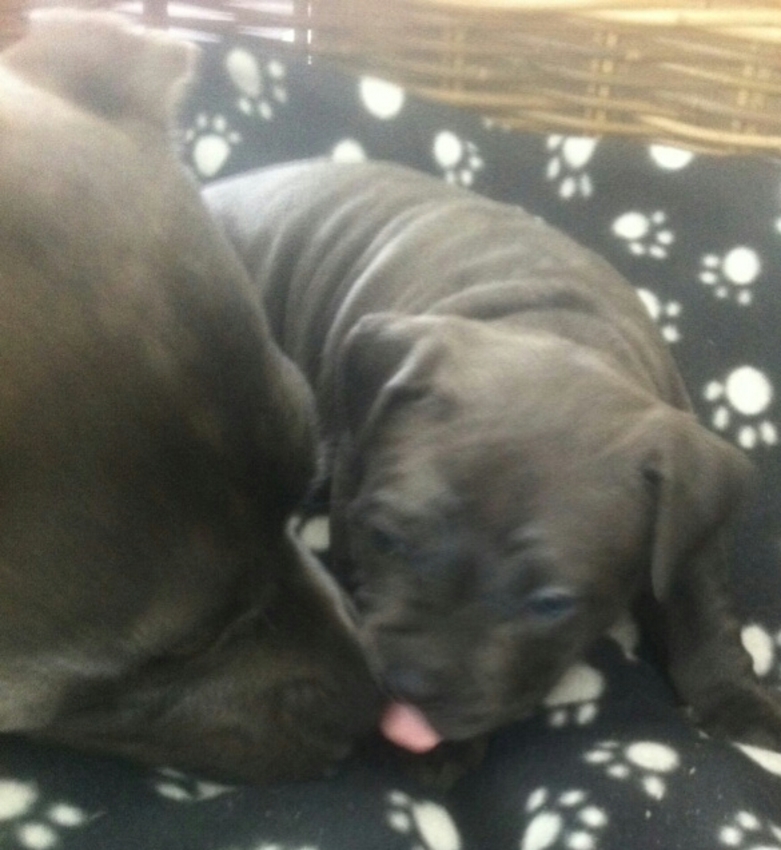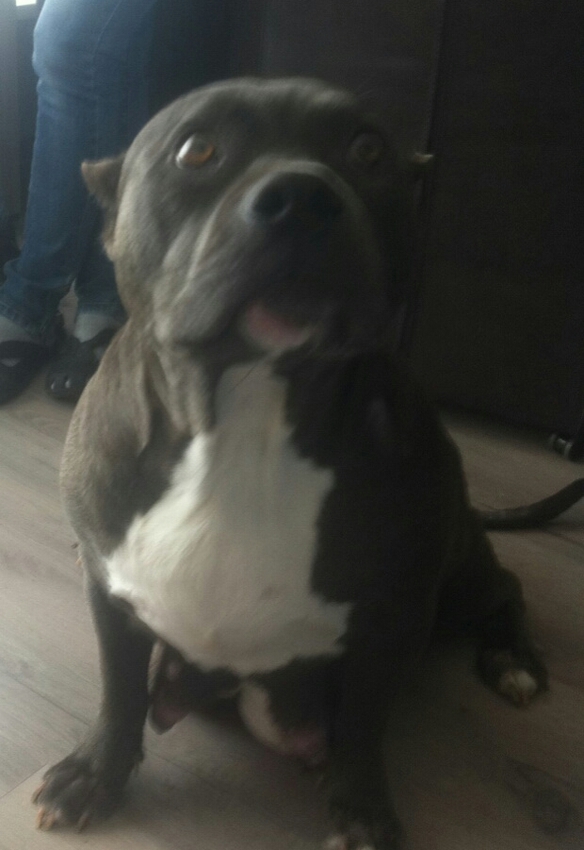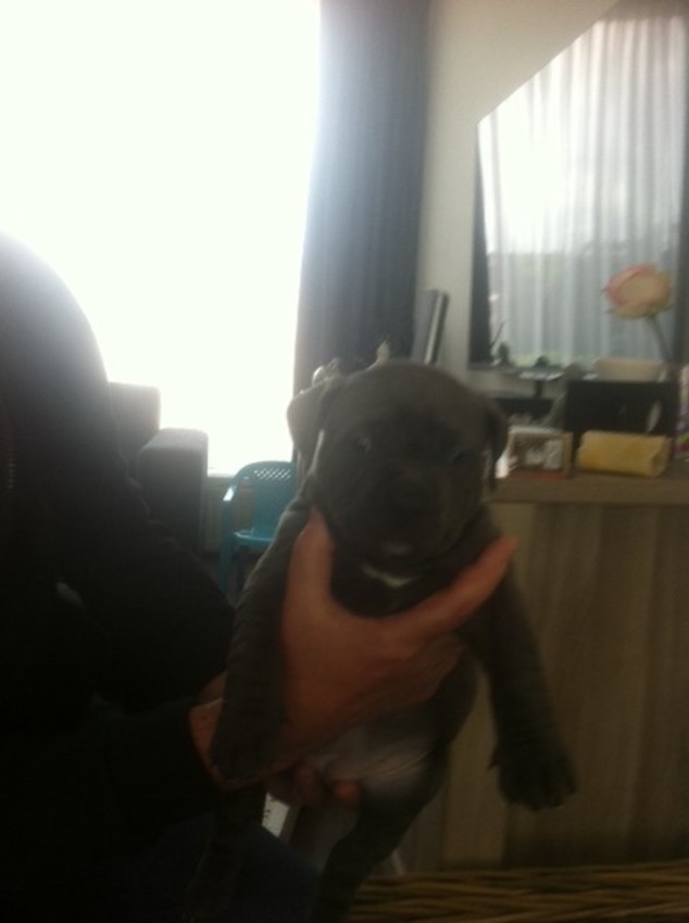 Ja hij vererft mooie puppen ,is alleen echt een tank maar ki dan heeft ze er niet zo'n last van ![]()
