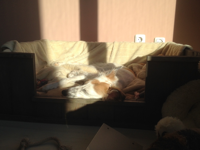 En last but not least, tijdens de verhuizing kwam ik het oude puppy mandje tegen, en dit was het resultaat....