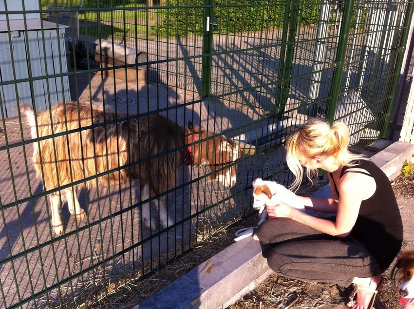 Verder heeft ze deze week ook kennis gemaakt met Peppel, het Kooikerhondje van mijn moeder. Peppel is een enorm eenkennig en angstig hondje, die nog wel eens wilt uitvallen naar andere honden als ze te dicht in de buurt komen. Het was dus maar afwachten hoe dat samen met Jenny zou gaan, maar gelukkig is de kennismaking goed verlopen! Binnenshuis krijgt Jenny af en toe nog steeds een snauw van Peppel als ze te dicht in de buurt komt, maar verder zie je wel dat Peppel haar steeds meer accepteert en ze steeds makkelijker met elkaar om gaan ![]()