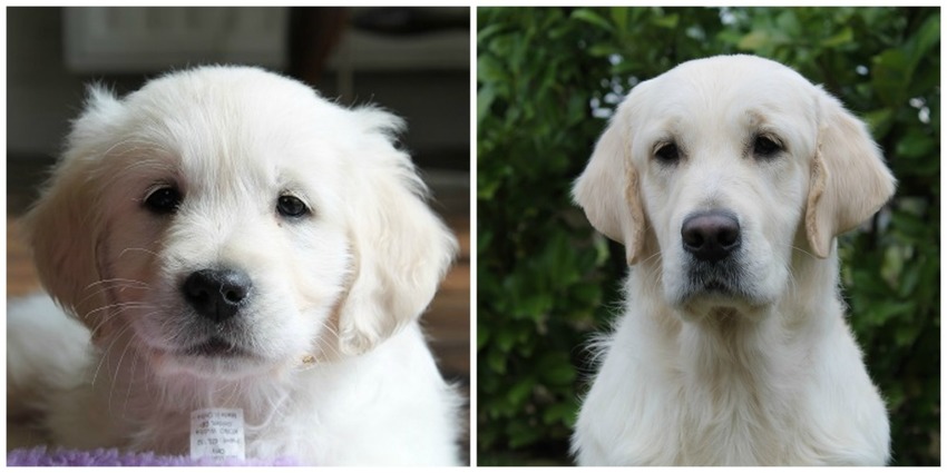 Ik zag een topic voorbij komen met een foto van Luna als pup en als volwassen (naja, meer volwassen dan pup) en als pup.
