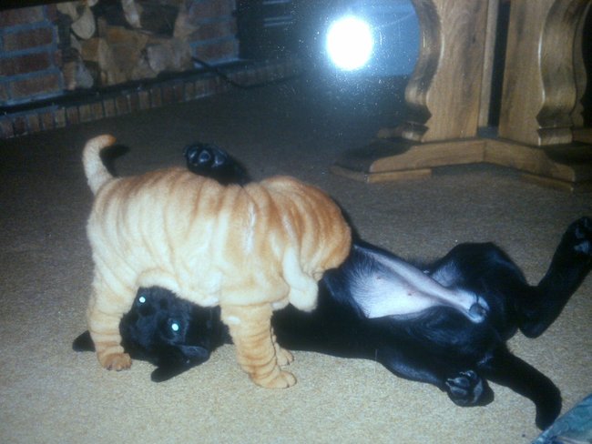 Ze zat hier tussen broer en zus labrador. Ze heten Xandock en Mysterie.