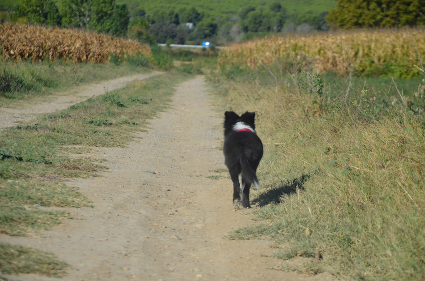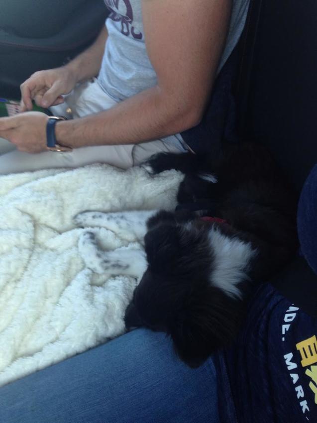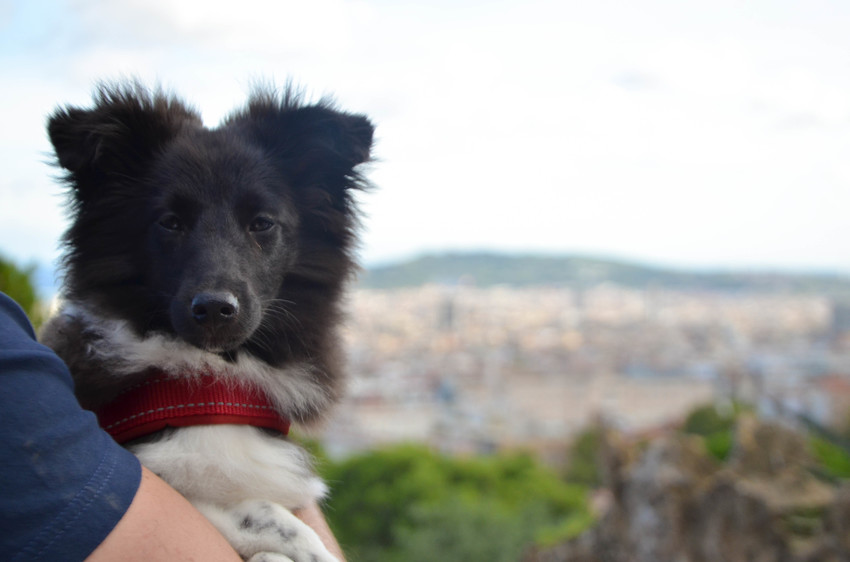 Wij zijn naar spanje gereisd met de auto. We hebben besloten om udhai niet in een bench te steken omdat de auto anders veel te vol zou zitten [vier volwassenen en een hond]. Hij moest dus met tuig aan de autogordel en dat ging prima, Udhai heeft de volledige reis geslapen en was super flink! We zijn een beetje fout gereden in de heenreis ... we zaten midden in de bergen maar dat leverde wel een leuke foto op.