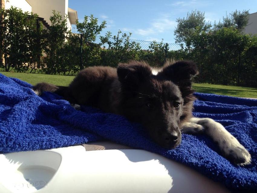 Udhai doet het super goed in Spanje! Hele rit geslapen... Hij hing aan de autogordel en toch 12 uur rijden dus was even spannend of hij zich niet zou gaan vervelen. Maar hij was super flink!! Hier in Spanje is hij ook super flink hij is zelfs super blij met zijn grote tuin hihi.