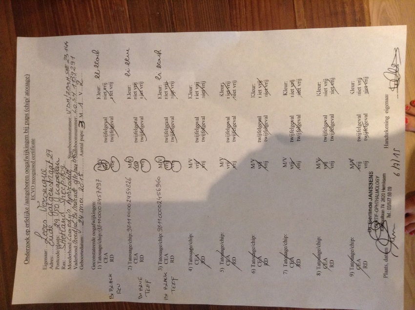 echter zijn de pups wel drager van een oogziekte ( die in de verzamelnaam van cea zit.) dus moesten wij ooit willen fokken ( wat niet het geval is) moeten we een teef nemen die niet drager ( of de aandoening heeft) is.
