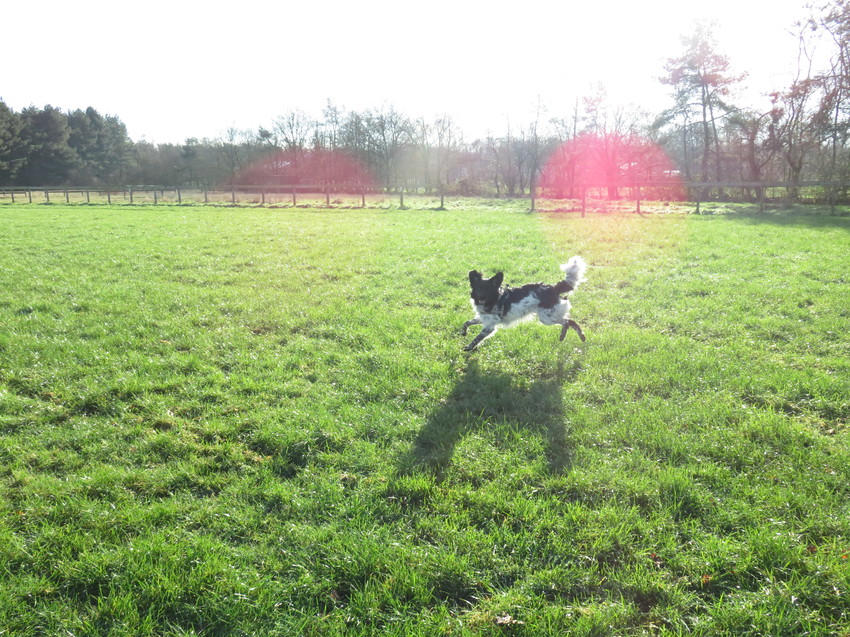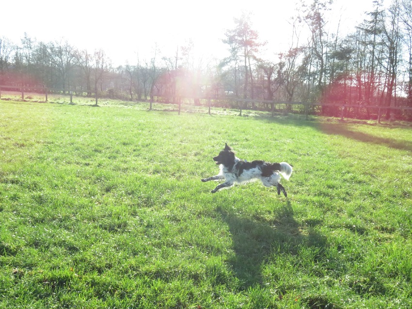 Dit is ongeveer het beeld van de gemiddelde wandeling :P Zijn zwart witte kont met een zwiepende staart