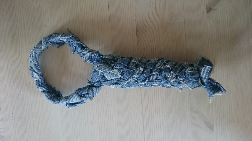 Bij Taika blijft ook niks heel qua speelgoed, dus dat kopen we allang niet meer voor haar. Ik maak meestal zelf wat trek- en speeldingetjes van spijkerstof of een oude handdoek. Wordt superstevig en mocht het op een gegeven moment stuk gaan, dan gooi ik het gewoon weg en maak weer een nieuwe.