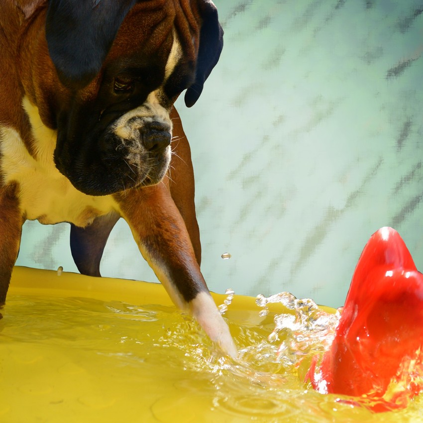 Dus Hus kan lekker zwemmen nu in een diep bad