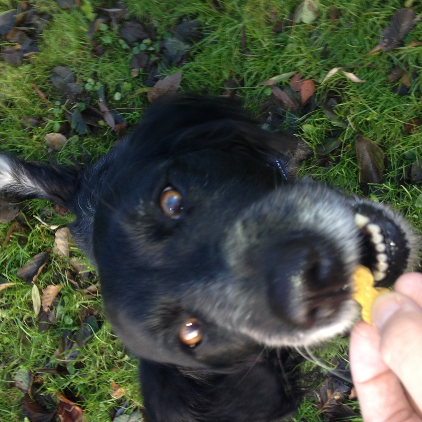 Als pup vond hij deze kauwstaven erg lekker, nu niet meer haha. Nu gaat de voorkeur uit naar konijnenoren, maar daar heb ik geen foto van