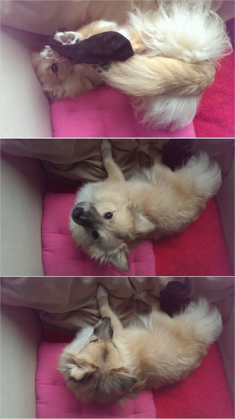 Die eerste dag dat ze bij ons was. Wat waren we gelukkig en zij ook. En haar eerste avond in haar mand, waarschijnlijk moe van alle indrukken... Maar wat heeft ze goed en rustig geslapen !