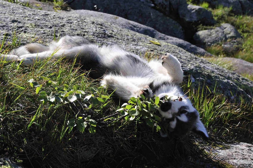 ... dus waarom niet gewoon op een wandeling, heerlijk met het buikje in de zon? Hmmmmmmm! Kan baasje ook even tukje doen.. ![]()