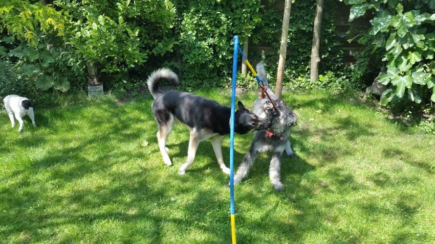 ZO BLIJ MEE Mijn schouder is stuk en Suusi wil het liefste altijd een trekspelletje met me doen, zo kan ik wel met haar spelen en aansporen, maar hoef de klappen niet op te vangen ;-)