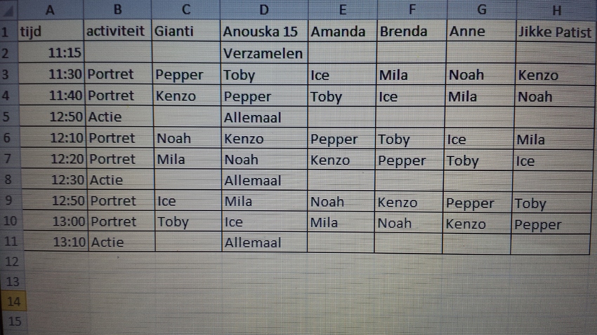 Heb toch een schema gemaakt aangezien de fotografen graag hou vast wouden.