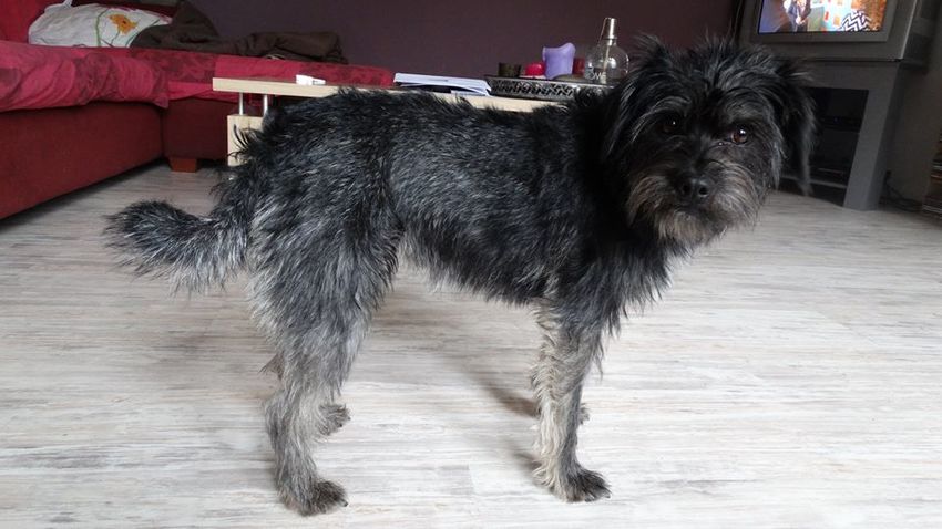Dit was onderweg naar huis vanaf het asiel, bibberend en hijgend van de spanning.
