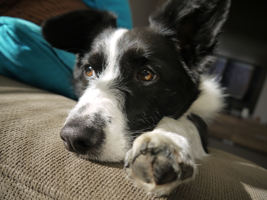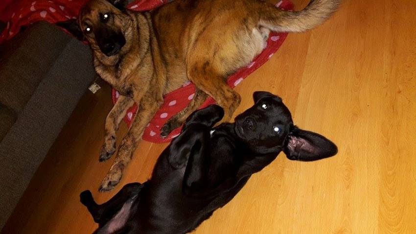Op de bank bij het vrouwtje, volledige ontspanning. Wat zó fijn is om te zien, als je bedenkt hoe gespannen hij de eerste maanden was <3