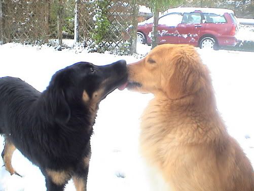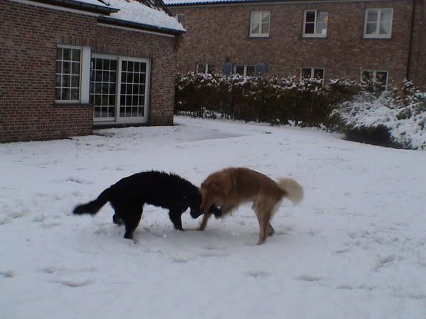 Wat een lieve foto's... Raki vindt sneeuw geweldig, ben benieuwd wat Bodhi er van vindt