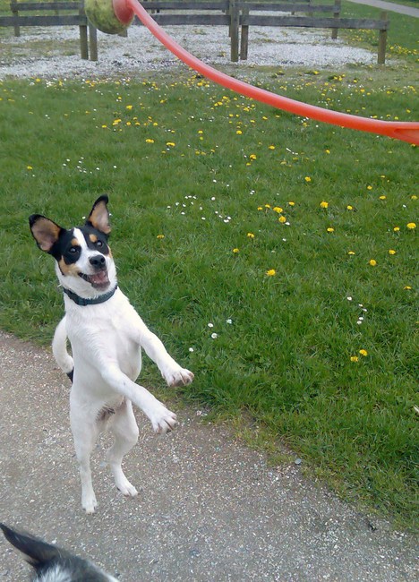 Met Raki wordt er met stokken gegooid (voorzichtig uiteraard) en met een tennisbal/voetbal. Soms voetballen we. Hij rent ook lekker door het bos of op een grasveld.
