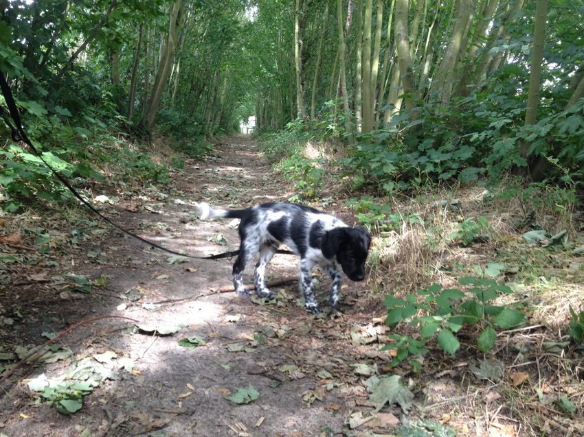 Mila gaat altijd midden in het pad liggen als we met de bus gaan..