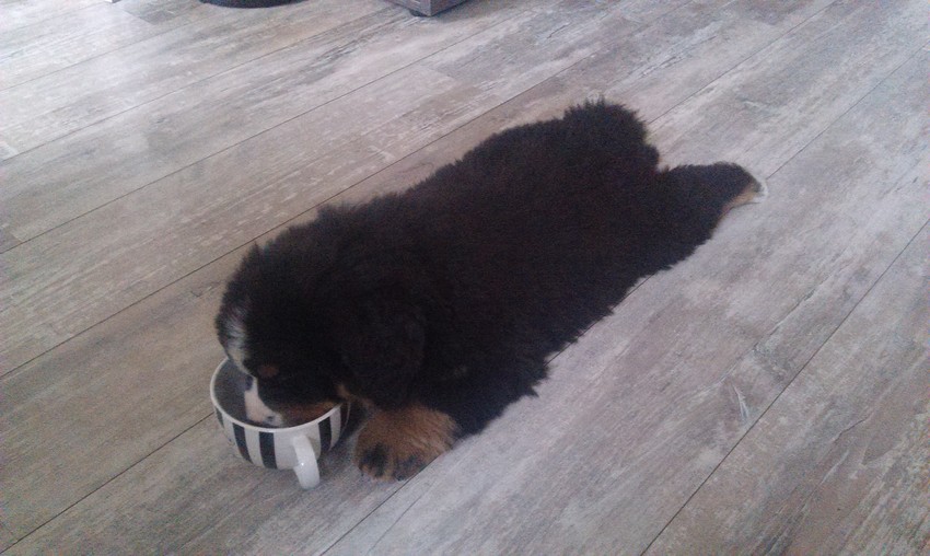 Dexter was zo moe van alle indrukken op zijn eerste dag. Deed nog een dappere poging om zijn brokjes te eten, maar de slaap won ;)