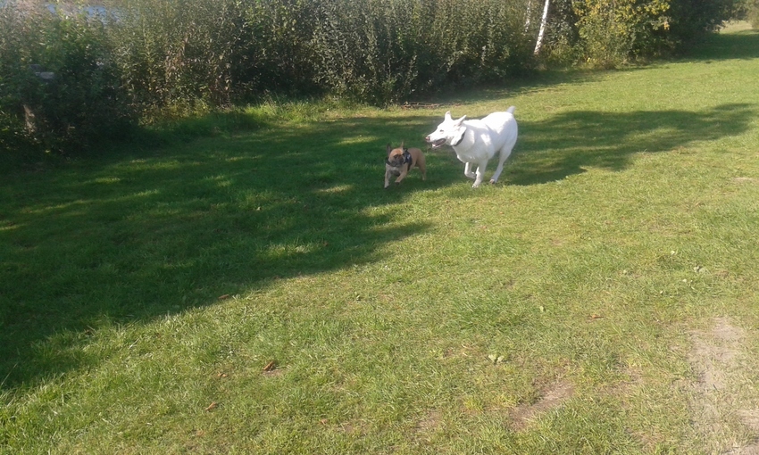 Wij zijn vanochtend na de hondenclub geweest en het was erg fris ja. Vanmiddag na de Galderse meren. En het was heerlijk. Had het erg warm tijdens het lopen. Het was erg druk, veel honden en Shadow heeft lekker gespeeld. Ze heeft heerlijk gespeeld met een franse bull. Normaal speelt ze niet met kleine honden ze gaat daar alleen mee snuffelen maar deze daagde haar lekker uit. Dus ze hebben wat afgerend met 2