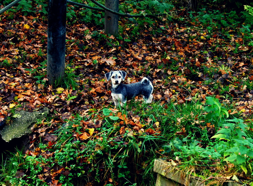 Ik waaide net bijna van de weg af. Echt windstoten hier. Maar gelukkig niet echt koud. Zora weet niet wat ze meemaakt. Zoveel blaadjes om achteraan te jagen!
