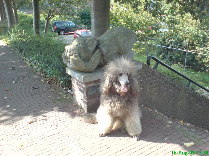dagmiddag, komt er soms iets op je pad dat je aan het denken zet. Dit keer was het een beeld van een aan de ketting verblijvende hond. Hierbij denk ik dan niet aan het beeld - waarvoor het waarschijnlijk bedoeld is - dat de gedachte aanzet om honden aangelijnd in de bebouwde kom mee te nemen. Mijn gedachtegang nam een andere wending. Wat ik bedacht was dat, voor zover ik weet, er nog steeds geen echt verbod is dat honden permanent vast liggen aan een ketting. Goed, er zijn regels bedacht die dit moeten beperken, maar die werken slechts voor een deel. Zo is bepaald dat, als het dier vastligt, er geen wurging of verwonding mag optreden. Ook moet het dier voldoende bewegingsruimte worden gelaten en de hond mag niet door obstakels worden belemmerd. Verder moet het dier toegang tot een hok hebben. Dit hok moet bescherming bieden tegen regen en kou en het moet eenvoudig kunnen worden gereinigd. Regels dus die alleen maar voldoen aan de basisbehoeften. Stel je voor, het grootste gedeelte van je leven geketend te moeten doorbrengen. Dit overpeinzende lopen we toch door. Gelukkig wordt mijn leven niet beheerst door het zien van dergelijke voorbeelden. Eigenlijk ken ik ze niet eens, maar ik vermoed dat ze toch nog voor komen. Er is dan nog 1 gedachte die mij positief stemt: wat ben ik blij dat Bailo een andere levensinvulling heeft.