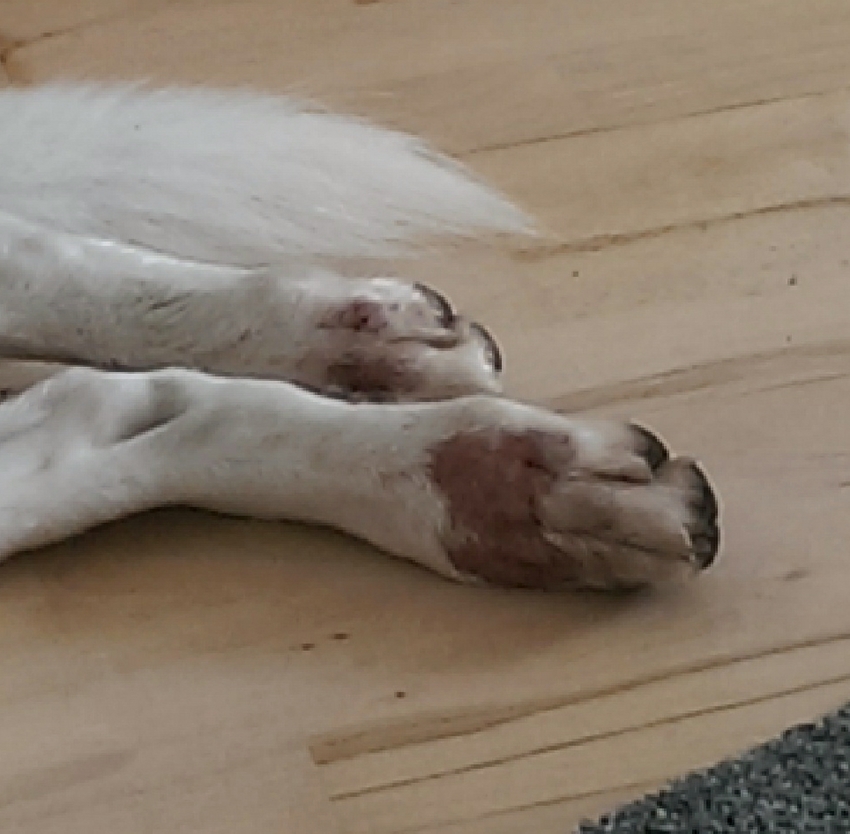 Mike likte zijn poten kapot van de jeuk en daar kregen we zalf voor.