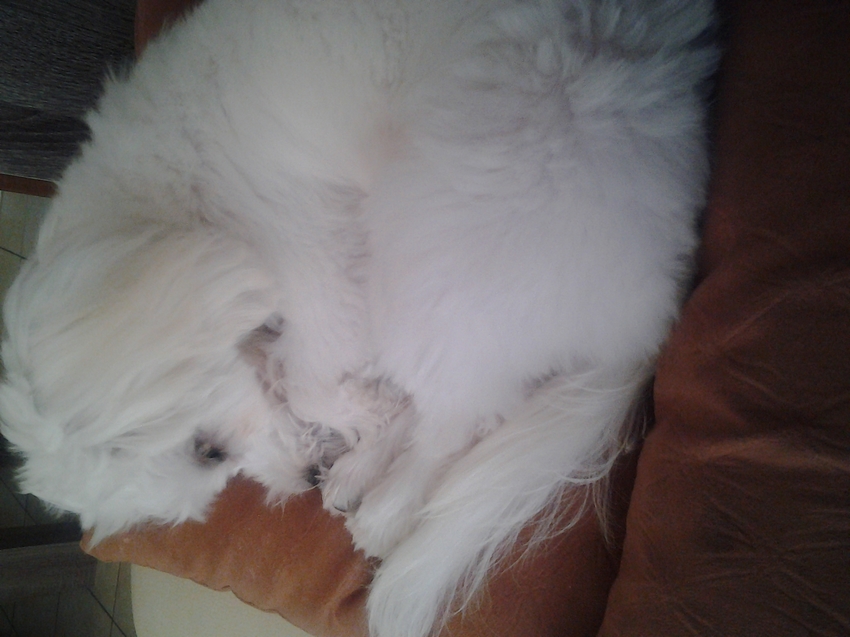 Bear heeft een beetje een voorkeur voor kleine witte hondjes als vriendinnetje. Ik durf hem geen foto van knappe Lilly tonen hoor, dan is hij meteen tot over zijn oren verliefd.