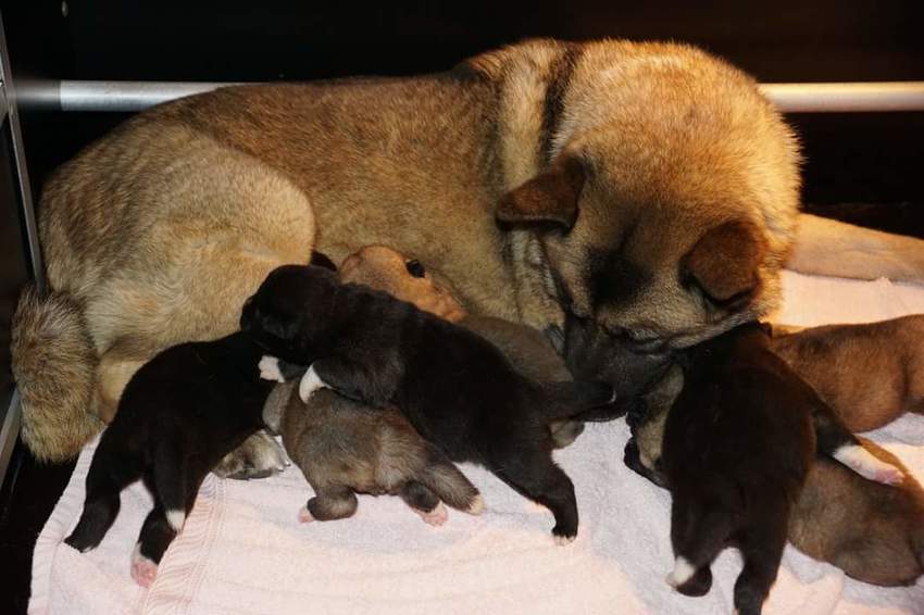 Maar zeker weten we het nooit. Sommige hele donkere Akita's worden ook blond.