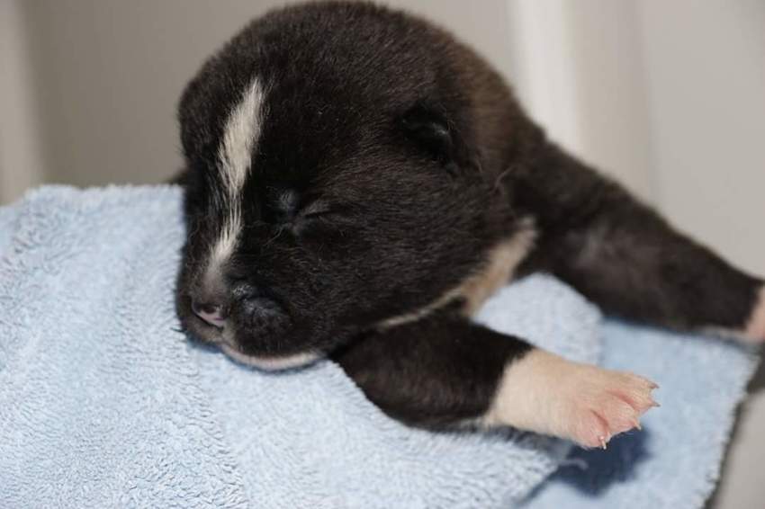 Nee, Akita's verkleuren nog heel erg. Ze worden nog veel lichter. Toen we daar waren was Kiba al veel zwarter dan dat hij nu is.