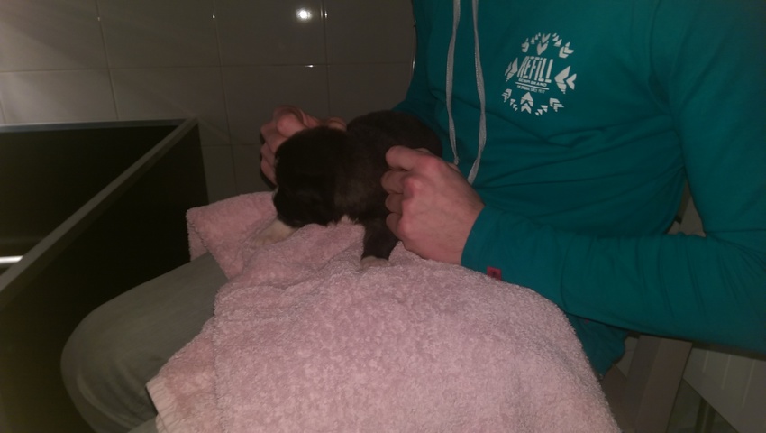 Dit nestje heeft 3 reutjes. 1 zwarte, 1 donkerbruine en 1 iets lichter dan donkerbruin. Akita's verkleuren nog heel veel na de geboorte en daarom wilden wij voor zekerheid graag de zwarte zodat we niet dezelfde kleur als Jackie zouden hebben. Opzich maakte het niet per se heel veel uit, maar omdat we de keus hadden.. gingen we voor de zwarte.