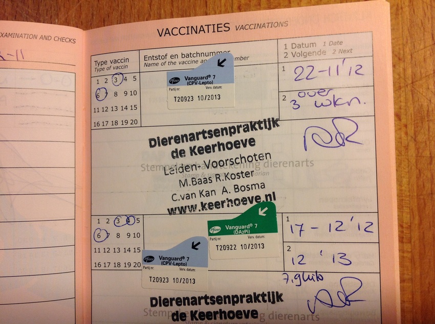 Cocktail van nobivac zit parvo hondenziekte leverziekte influenza en weil......een cocktail.