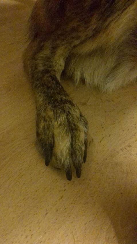 Hier slijt het vanzelf af, er wordt niets geknipt, ik hou wel de nagel kort boven de enkel, meer niet, zal even een foto neerzetten via de laptop , zit op de iPad.....moment.......boven de enkel raakt natuurlijk de grond niet, toch zorg ik dat tie niet scherp is.