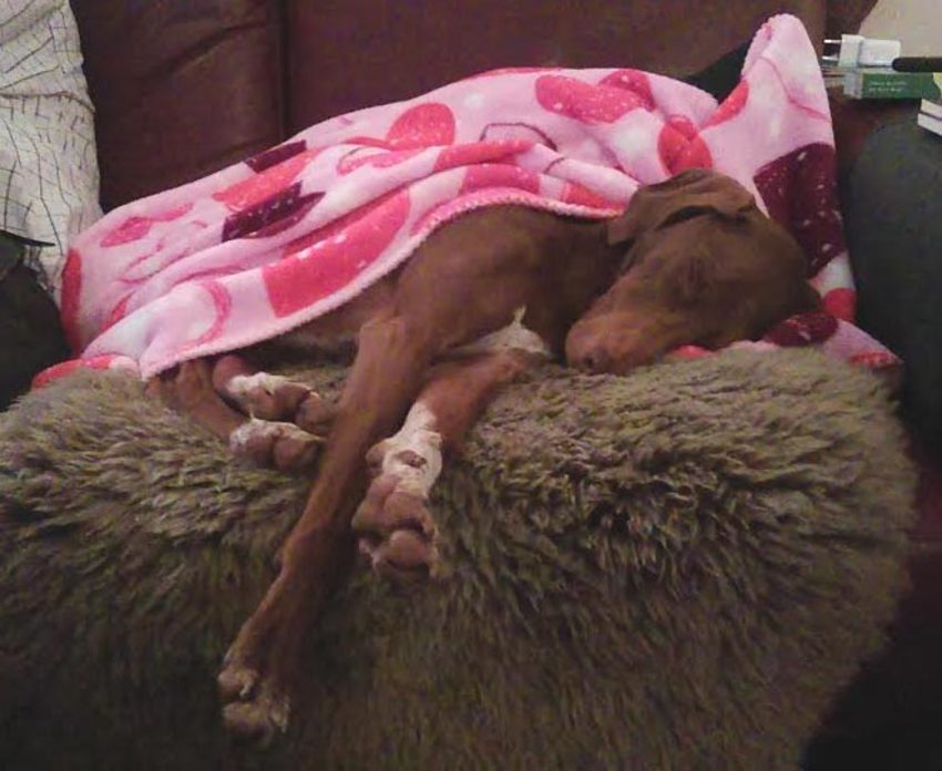Ze ligt graag hoog en ze mag hier ook gewoon op de bank.