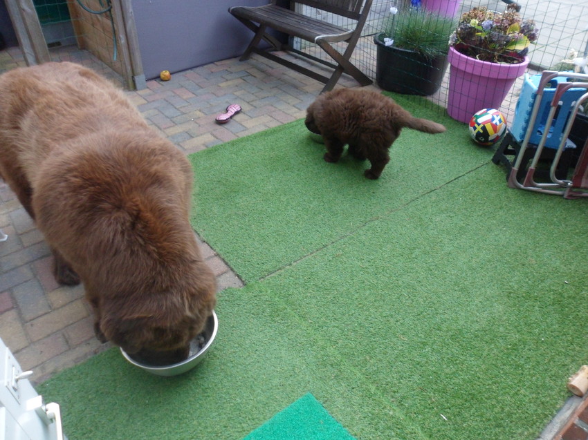 Bams wordt 1 mei negen jaar, ze is heel bijzonder , niet mijn eerste newfoundlander, maar echt ze is zo bijzonder....heel lang betwijfelt of ik er een bij zou nemen, het gaat goed............Bams is nog zeer actief, zwemt iedere dag, en heel zelfstandig en toch zeer aanhankelijk , komt dat ik waarschijnlijk alleen ben, ik ben de baas , er is niemand anders die over haar baast......en de kleine Ogin is ook al zeer zelfstandig......zo ben ik voor ze, denk dat dat ook mee helpt, Ogin vanaf dag een vind het in het geheel niet erg om alleen te zijn, een pup die ook haar rust zelf neemt, nimmer overprikkelt is, en al heel leergierig is.......en door mij Bams met rust laat, tuurlijk zoekt ze Bams op, maar ik ben als een kloek, lelijk doen tegen Bams is er niet bij, Ogin weet het en heeft ook respect voor de, Bams gromt niet tegen d'r, vandaar dat ik er ben die het in goede banen leid.....waarom niet.