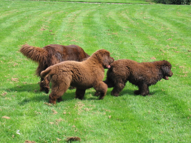 ze hebben me wel eens gevraagd wat vind je nou het leukst aan het uiterlijk van een newfoundlander ? de kont..... de wiebelende gang van een vrouw.... in draf hebben ze alleen een rollend gangwerk, maar in telgang wat toegestaan is voor dit ras, alleen op shows moet er natuurlijk in draf gelopen worden, is de wiebelende gang echt van een berin.... en dan zo,n heerlijke dikke kont. hahahahah.![]()