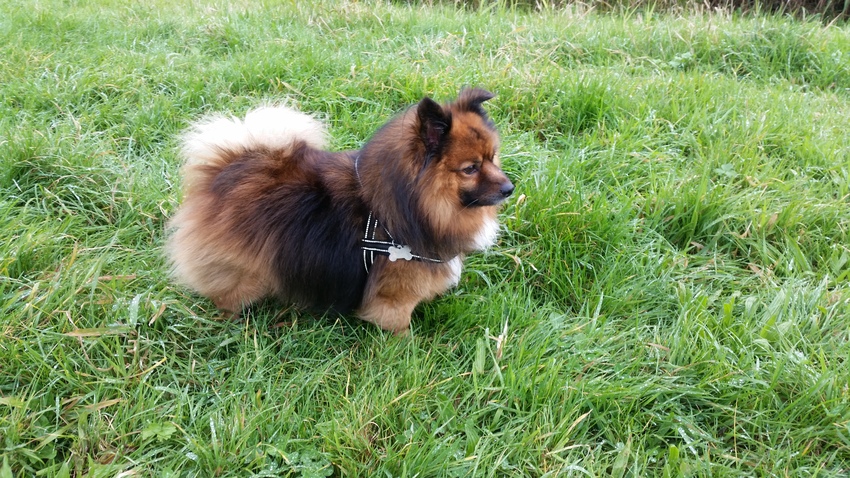mooi hondje alleen spijtig dat ie de poten van de jack geerfd heeft. Door de kees te kruisen met de jack maak je ze er niet gezonder op met zon pootjes