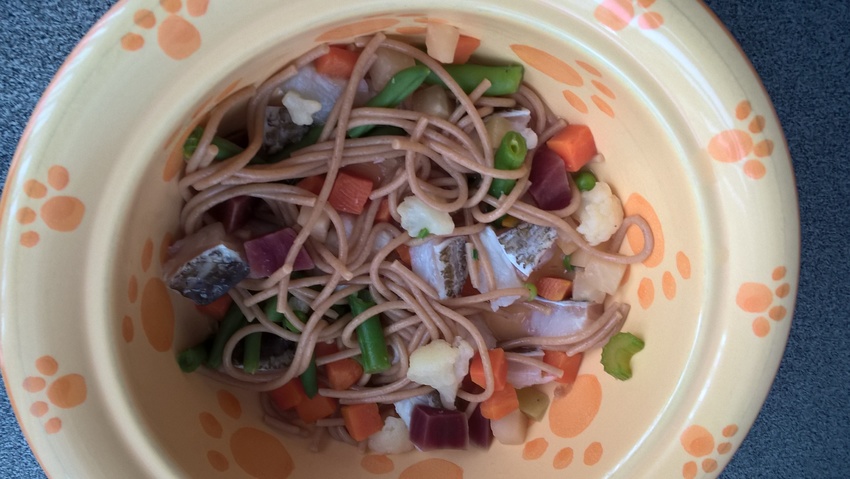 Vanochtend hadden Sandy en Diva pro plan brokken met een blokje knoflook schapenvet