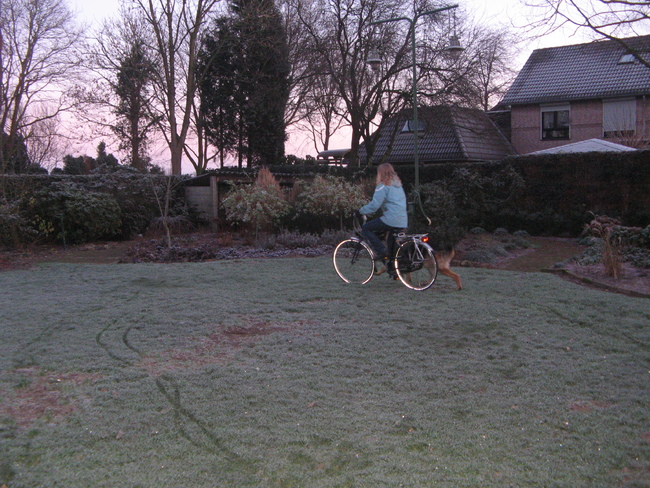 Heb vanmiddag gefietst, geen filmpje, ik zal volgende keer eens proberen. We fietsen nu vaker de ronde van 3,5 km. Anders gingen we ook nog op de fiets naar de hondenschool en liep Daan daarvan een stuk naast de fiets mee, heen 1 km en terug ook weer 1 km. (4 keer per week)