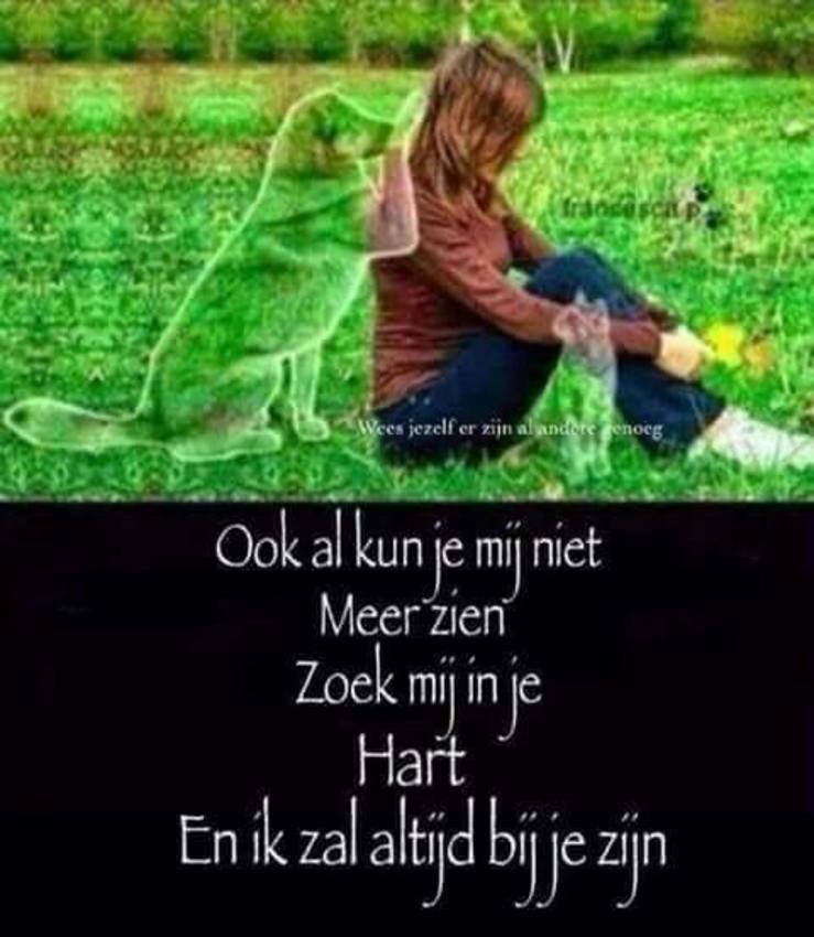Och wat jammer ik voel zo met je mee by my is het 8 maand en nog mis ik haar zo je maatje moeten afstaan is zo erg veel veel sterkte