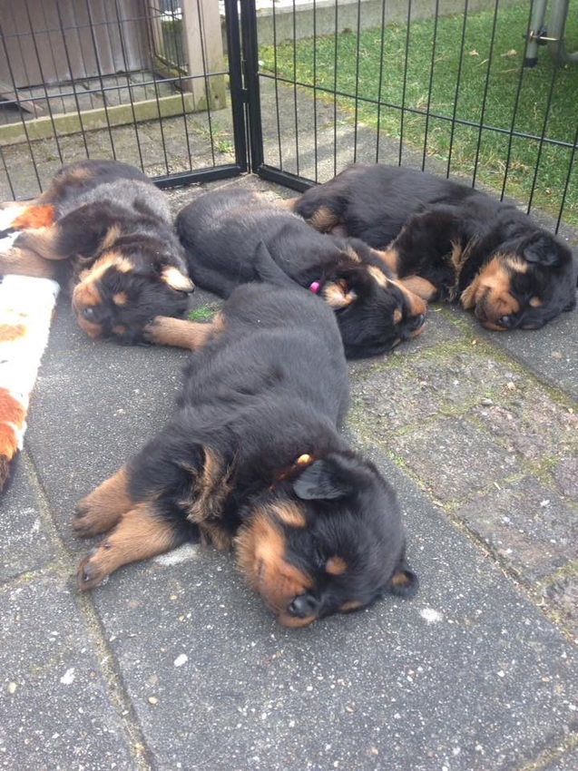 de pups doen het goed. Een paar dagen geleden zijn we met de pap begonnen. Zara is klaar met het voeden en laat dit eigenlijk alleen 's ochtends echt toe. Voor alle pups hebben we leuke en enthousiaste mensen gevonden. De reu blijft in de buurt wonen, dus dat wordt regelmatig samen wandelen in de bossen.