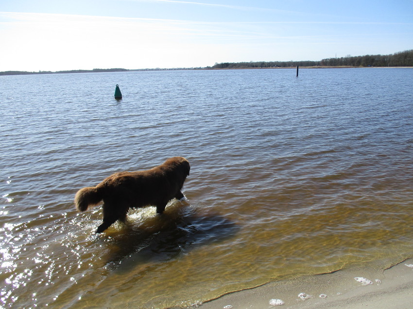 Voor het eerst alleen met Bams met de auto en naar het water...voor Bams heerlijk, er was niemand...........