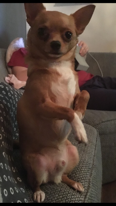 Ik weet eigenlijk niet zeker of ik wel twee hondjes heb, volgens mij is 1 van de twee een stokstaartje, hij kan lang zo blijven zitten![]()