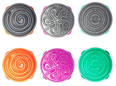 Mijn slo-bowls komen morgen binnen, ik heb deze drie besteld (in vrolijke kleurtjes, uiteraard) en ben van plan dagelijks af te wisselen, zodat ze iedere dag een andere "puzzel" hebben :)