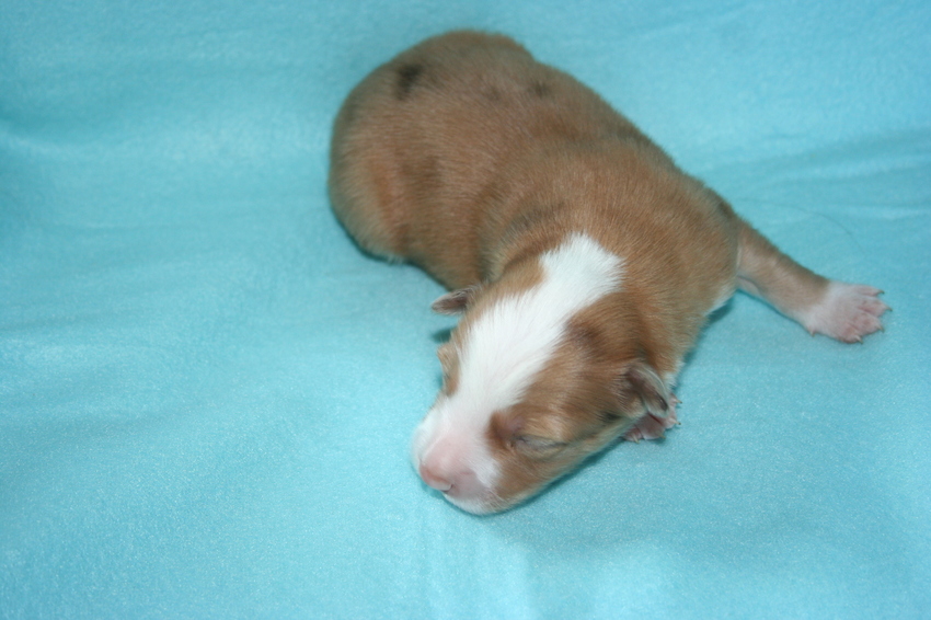 Bij de geboorte zie je nog redelijk duidelijk het merle patroon