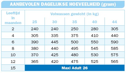 Heb je brok van de fokker meegekregen die de pup al kreeg? Kijk dan op die zak hoeveel de pup mag hebben. Als de pup eerst andere brok kreeg dan de RC dan kan hij het niet lekker vinden. Is het puppy brok van dat merk? De voertabel is dan nl anders dan de Maxi Adult hierboven. Voor grote rassen worden de eerste paar maanden ook puppybrok aangeraden. Mijn pup krijgt voor mini pup ook RC en die mocht vanaf 4 maanden pas 290 gram. Daarvoor was het minder en na de 6e maand wordt dat ook weer minder.