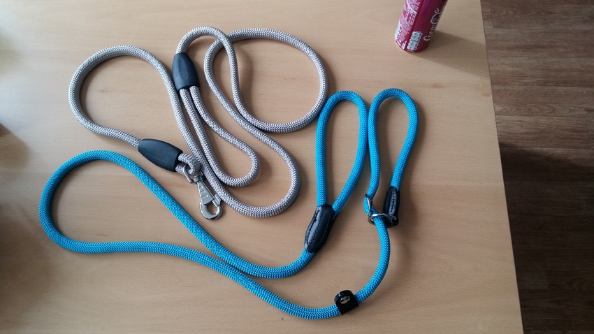 Vanochtend ook nog 2 nieuwe lijnen gekocht. Gewoon zomaar. Een zilvere voor haar tuig en een blauwe voor het bos. Dan heeft ze meestal niks aan en is een jachtlijn het makkelijkste voor als ik haar tijdens het wandelen even moet aanlijnen